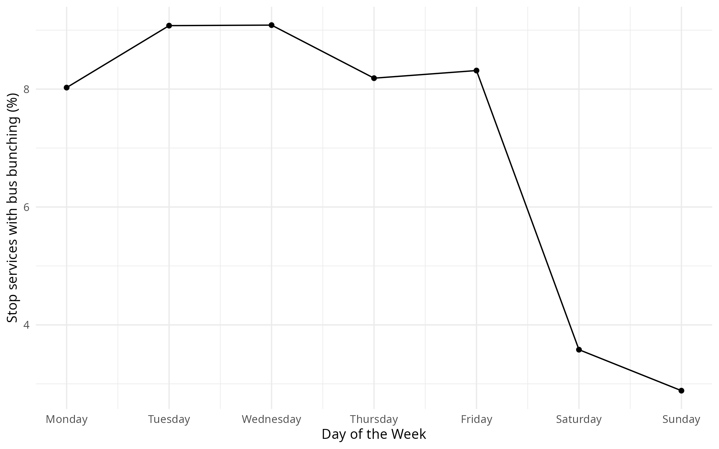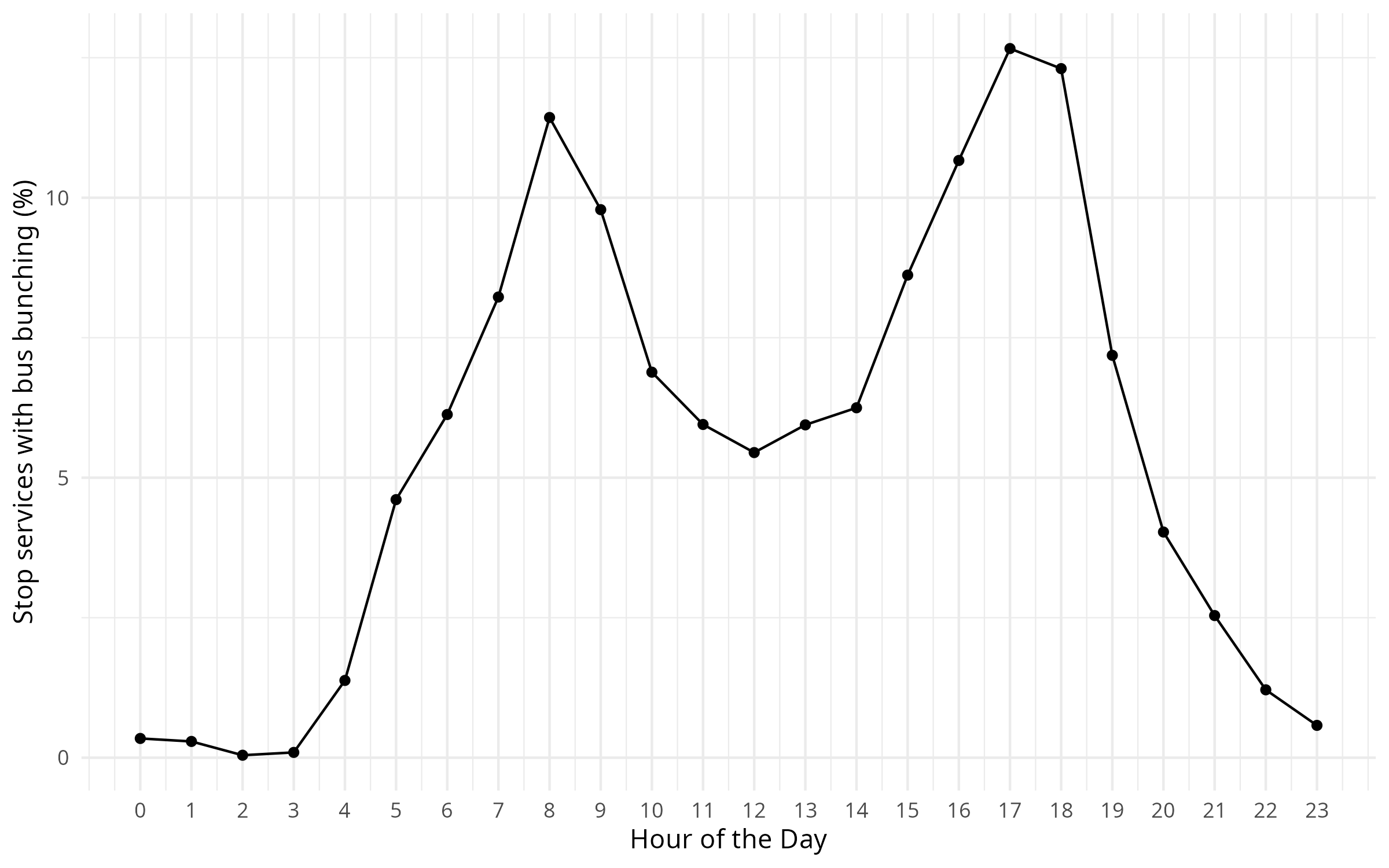 🚌🚌 Bus bunching1 occurs on 7.5% of stop services