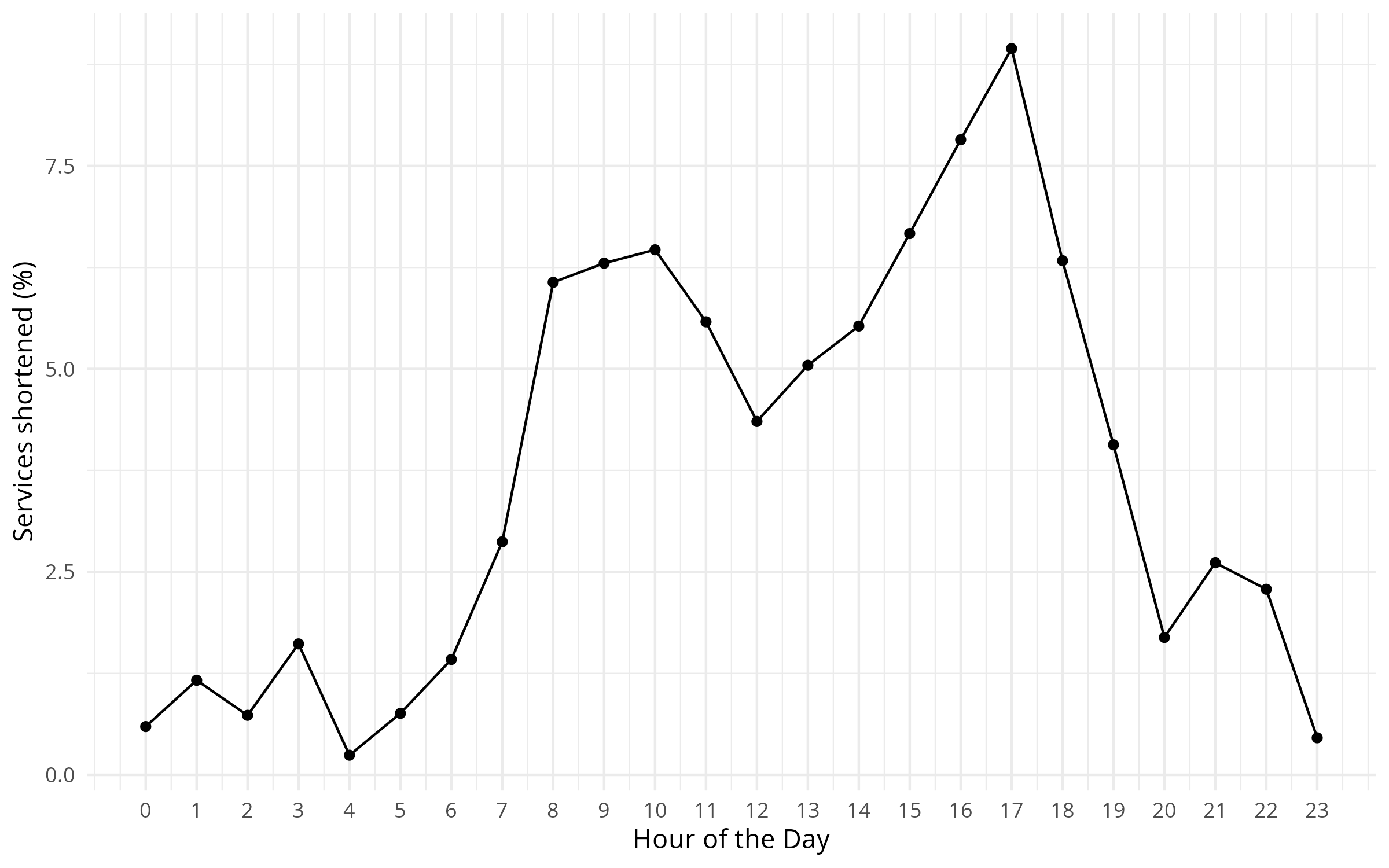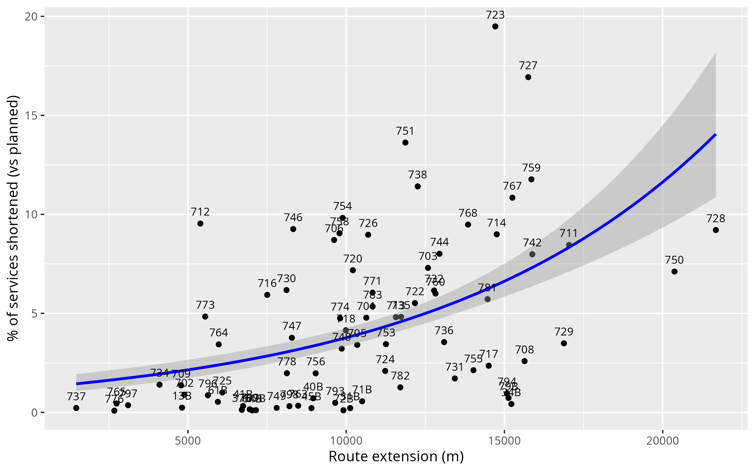 | Route | Shortened services (%) |