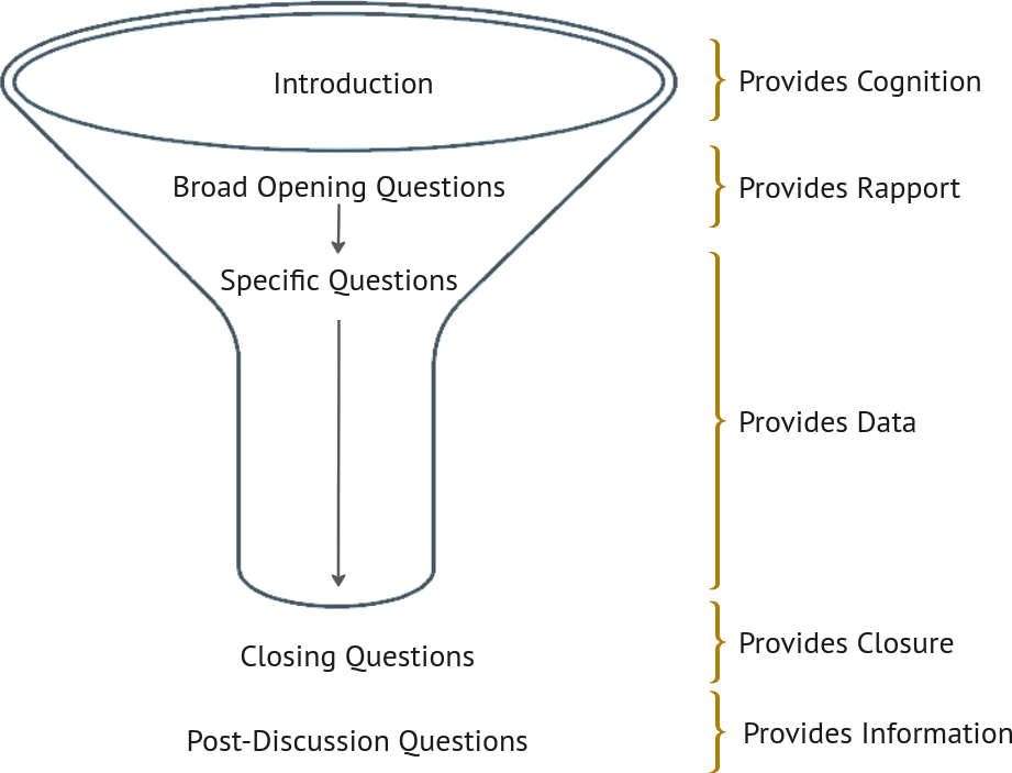 The session was held at the Pontinha garage in June 2025 and lasted 90 minutes. Moderated by the researcher, it followed a semi-structured discussion guide designed in line with Hennink, Hutter, and Bailey (2020) funnel design. This method, illustrated by Figure 3, begins with introductory questions to build rapport, followed by exploratory discussions on performance, influencing factors and use of the on-board monitoring system. Albeit the script, the purpose was to foster discussion and to let it flow naturally, with an active listening posture, bouncing between passive listening to the group interactions and active questioning to follow-up on emerging topics or refocus the conversation when participants start to diverge (Hennink, Hutter, and Bailey 2020).